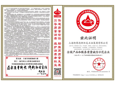 2024年315柯赛德润滑油又获“全国产品和服务质量诚信示范企业”称号